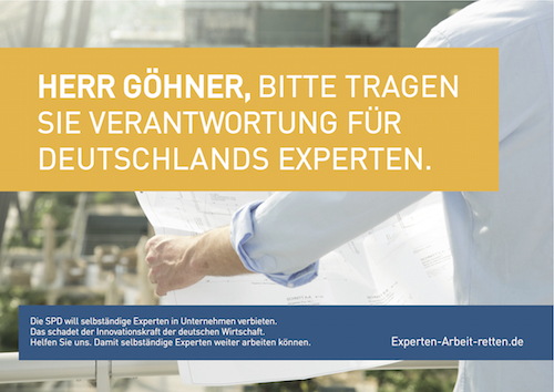 Im Koalitionsvertrag der gegenwärtigen Legislaturperiode hatte sich die Bundesegierung zum Ziel gesetzt, den Missbrauch von Werkverträgen zu unterbinden. Im November 2015 legte das Bundesministerium für Arbeit und Soziales einen Referentenentwurf vor, der, sofern er umgesetzt worden wäre, die Geschäftsmodelle Tausender im Markt etablierter Selbständiger an den Rand der Illegalität gerückt hätte. Die für die Selbständigen relevanten Gesetzesänderungen bezogen sich im Wesentlichen auf den §611a, BGB. Die dort genannten Kriterien kamen einem Berufsverbot für Selbständige (in der IT) sehr nahe.