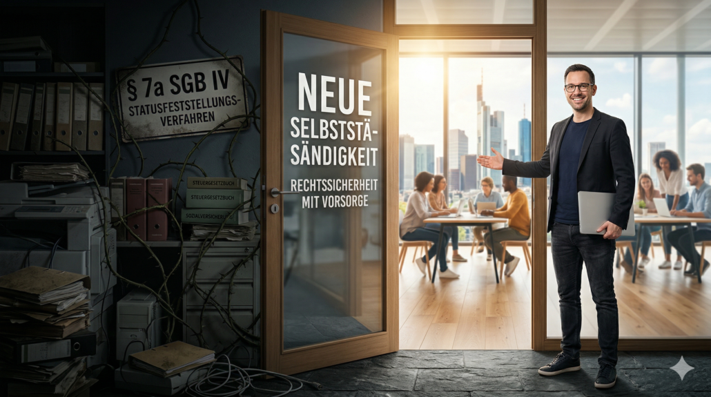 Der Dreh- und Angelpunkt des gesamten Entwurfs ist das Wort „ungeachtet“ (§ 7 Abs. 5 SGB IV-E). Dies bedeutet: Wenn die Voraussetzungen der neuen Selbstständigkeit erfüllt sind, gilt die Tätigkeit als selbstständig – völlig unabhängig davon, was nach der klassischen Gesamtabwägung herauskäme. Das ist für Auftraggeber ein enormer Gewinn an Rechtssicherheit, da die gefürchtete Unvorhersehbarkeit der Rentenversicherung ausgeschaltet wird.